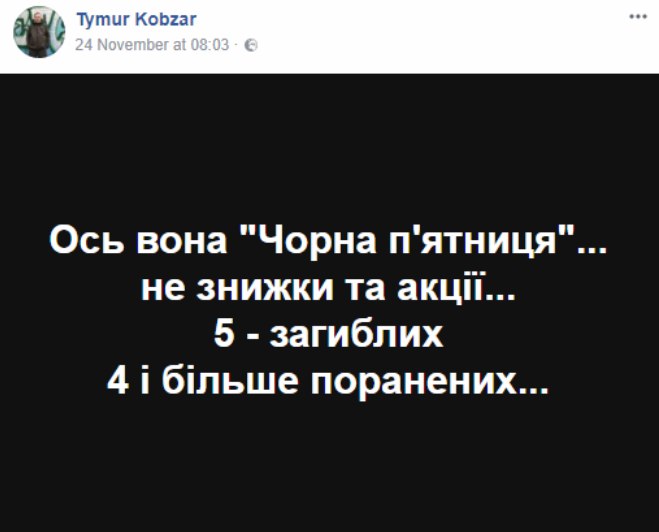 Вот она – «Чёрная пятница»… не скидки и акции… 5 – погибших, 4 и больше раненых…